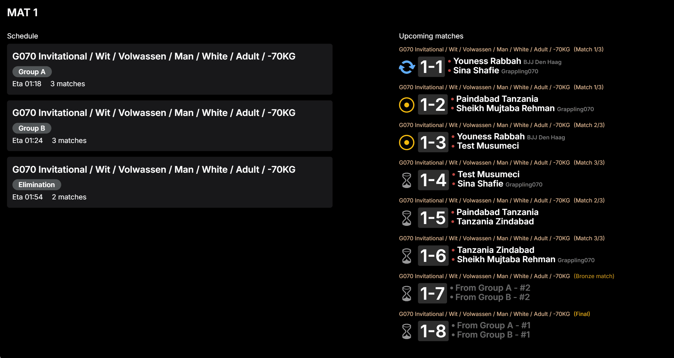 Our official livestream allows athletes, coaches, and supporters to follow every match in real time.