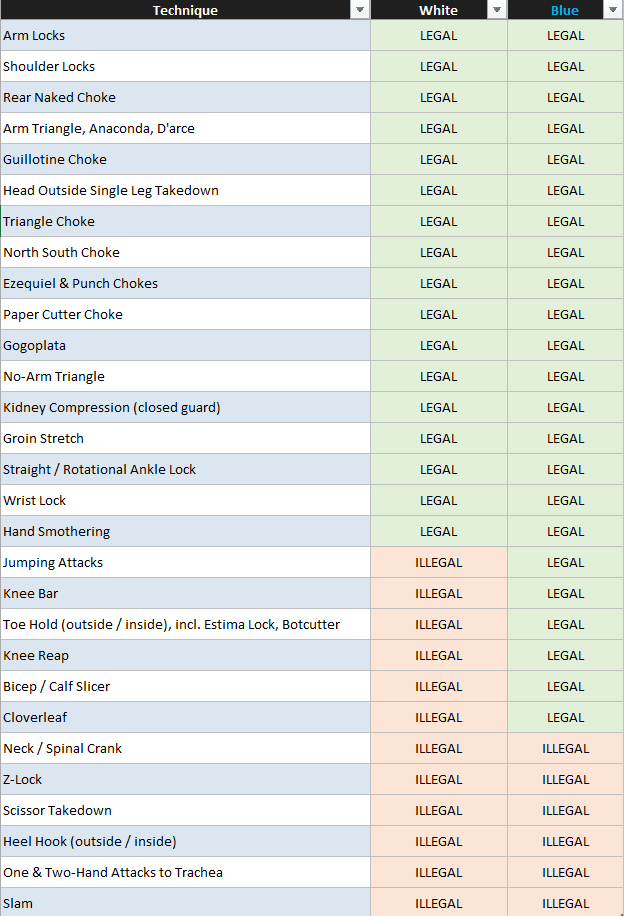 1.66 Attempting a technique not allowed at the division’s skill level as per the Allowable Techniques chart results in a disqualification.